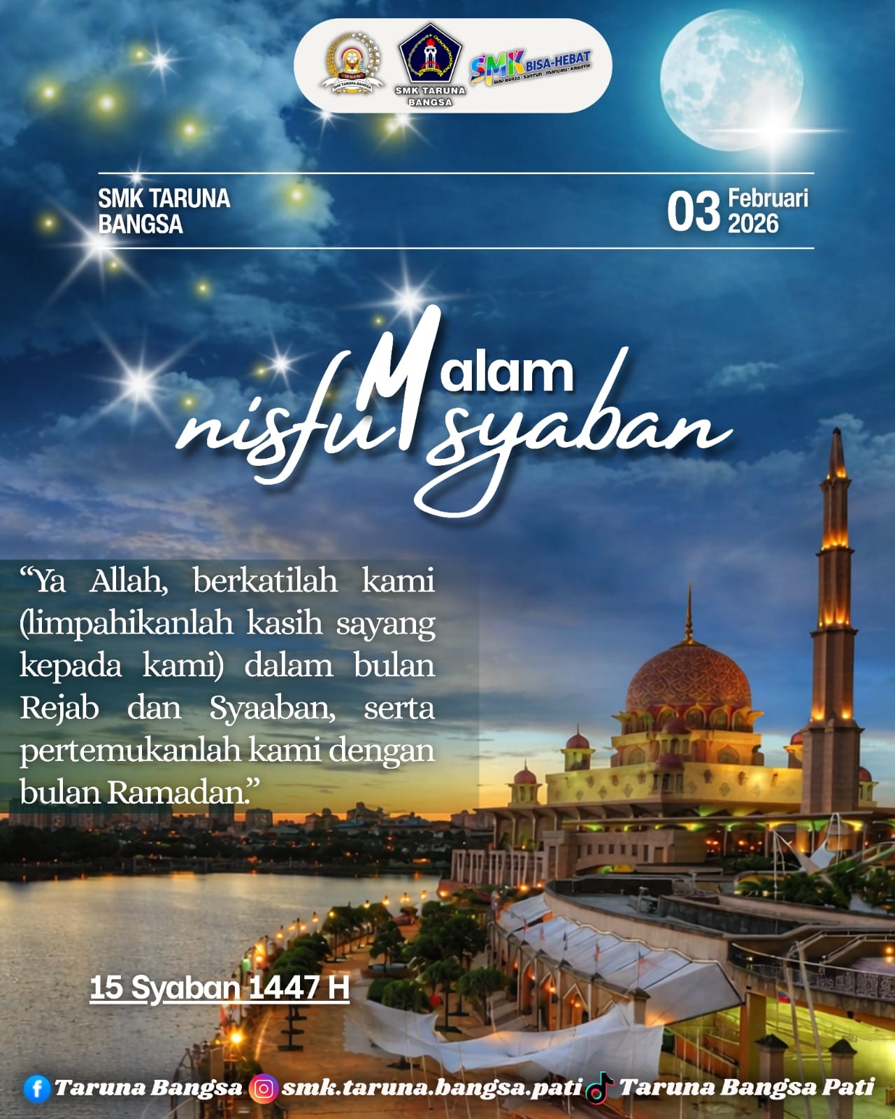 Dalam rangka memperingati Malam Nisfu Syaban 1447 Hijriah, SMK Taruna Bangsa mengajak seluruh warga sekolah untuk sejenak . . . 0